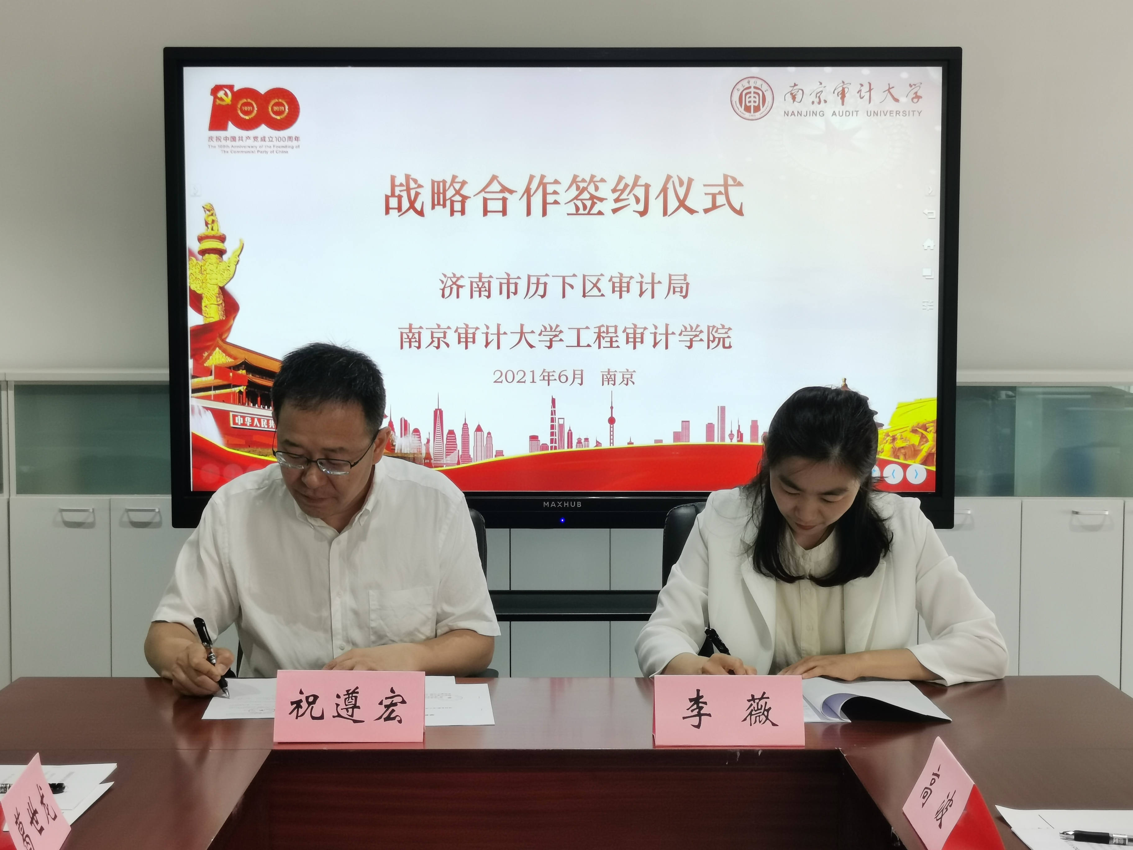 6月23日中午,必一运动bsport体育与济南市历下区审计局合作签约仪式在公司致远楼二楼会议室举行。济南市历下区审计局李薇局长一行、必一运动bsport体育祝遵宏经理等领导和部分师生出席签约仪式。