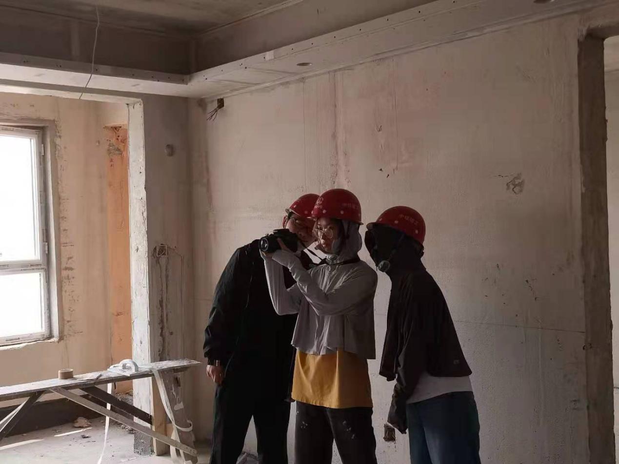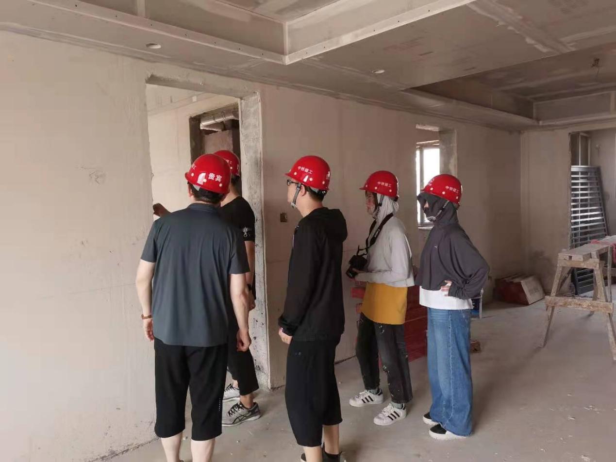 下图为投资审计组第三小组几位同学与审计中心工作人员在工程项目审计现场进行探讨学习。