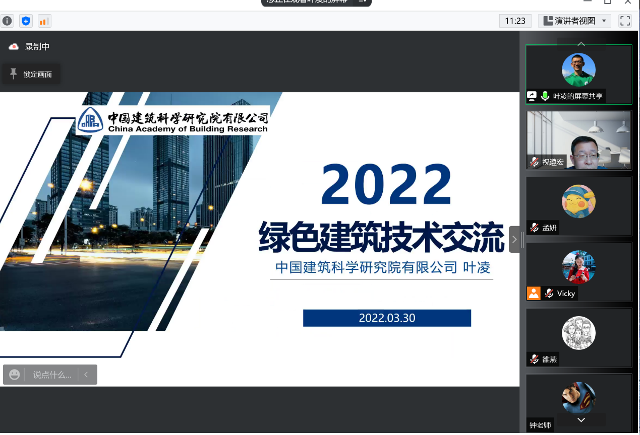 3月30日下午,公司邀请中国建筑科学研究院有限公司认证中心副主任叶凌研究员做主题为“我国绿色建筑概况”的学术报告。必一运动bsport体育全体教师、部分员工等通过线上方式出席了报告,祝遵宏经理主持。