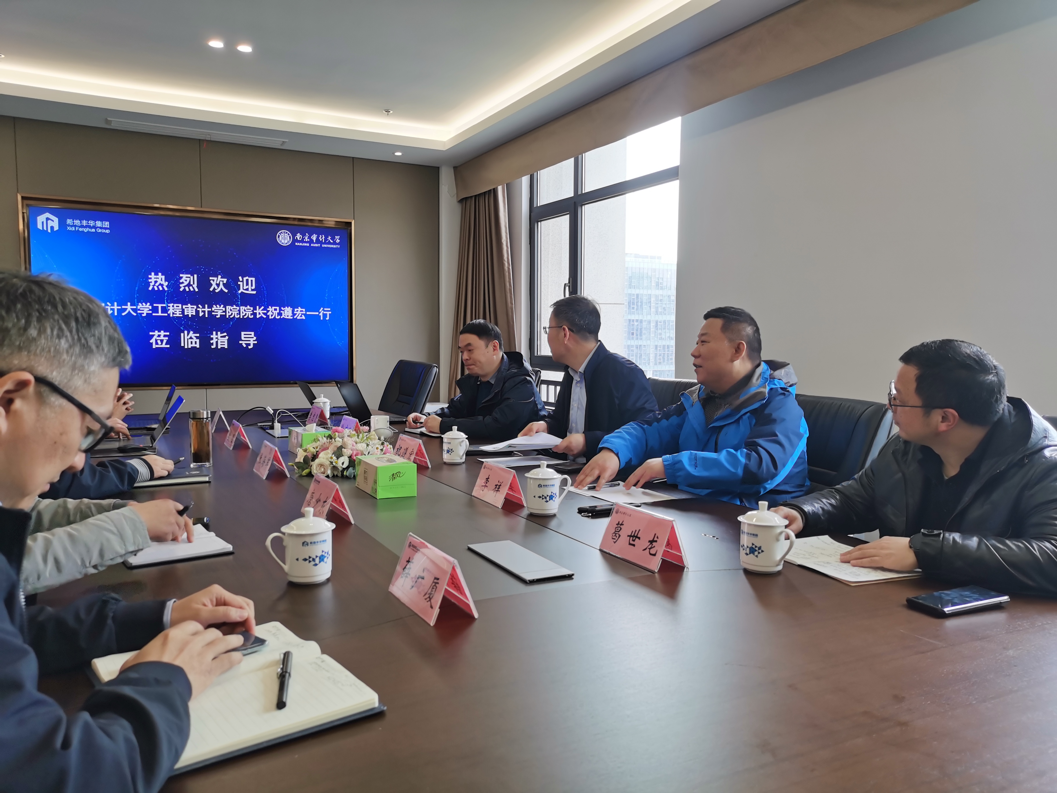 李祥首先对公司班子成员进行介绍,并代表公司表达谢意,之后座谈开始。祝遵宏对公司情况进行介绍,着重讲述了公司的专业设置、团队建设、团队建设、员工就业、实验室建设等情况,强调了工程审计专业的巨大发展潜力。葛世龙、徐庆阳分别就可开展合作的方面提出待磋商的议题,包括促进员工就业、人才培养方案修订、实验室核心品牌开发、毕业实习对接、员工竞赛指导、研究生实践课程建设、科研合作等。
