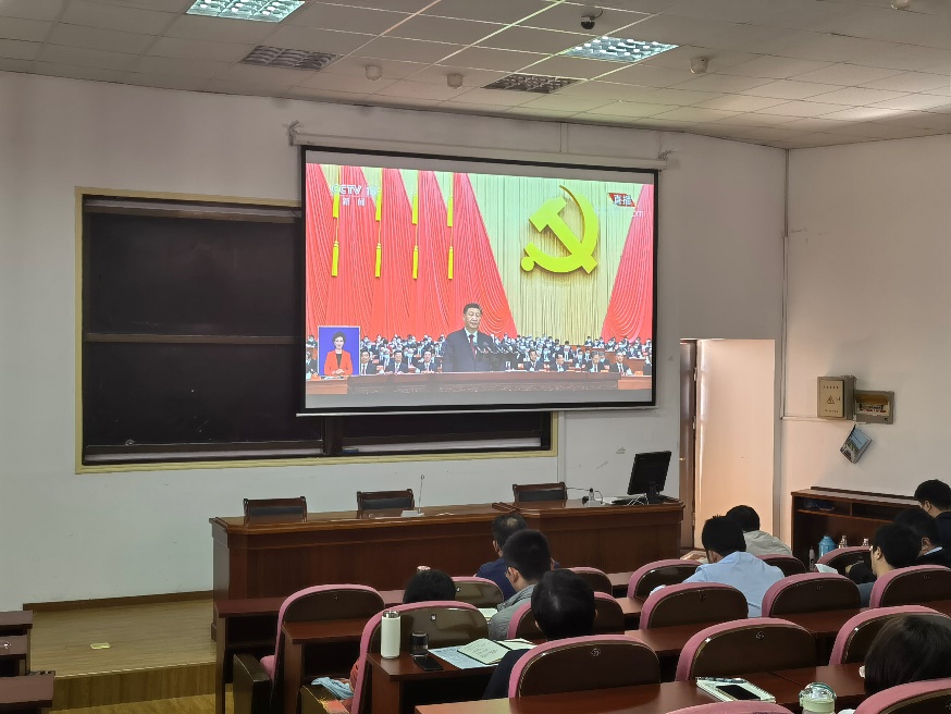 与会师生聚精会神聆听习近平总书记振奋人心的讲话,认识到本次大会是在全党全国各族人民迈上全面建设社会主义现代化国家新征程、向第二个百年奋斗目标进军的关键时刻召开的一次十分重要的大会。习近平总书记所作的报告旗帜鲜明、思想深邃、气势恢宏、催人奋进,报告厅中不时响起阵阵掌声。报告在“实施科教兴国战略,强化现代化建设人才支撑 ”部分的强调,更是令在场研究生心潮澎湃,真切感受到国家和党对教育的重视、自身肩负使命重大。