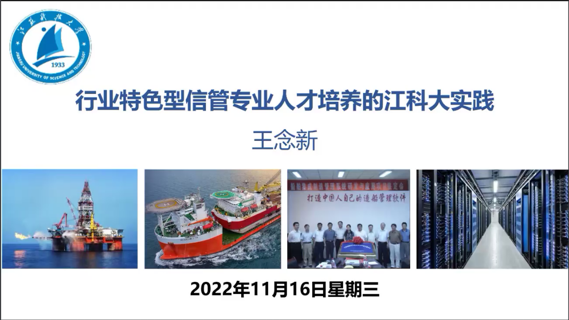 王念新首先从课程体系、教学资源、实践教学三方提出培养行业特色型高校人才面临的主要问题,并针对上述问题提出了相应的解决建议。他指出,培养行业特色型高校人才,一要重构全域视野的课程体系;二要丰富全真环境的行业特色教学资源;三要推动全程体验的实践能力培养;四要打造产学研用一体化教学团队。最后王念新介绍了“江科大实践”的实施效果与推广效果,并针对如何持续培养满足船舶制造业需求的信管专业人才的现实挑战给出经验分享与专业指导。