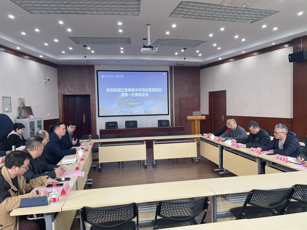 3月1日下午,江苏希地丰华项目管理集团董事长张海军一行5人赴必一运动bsport体育洽谈合作事宜,副董事长陈骏,公司党总支书记李祥,副书记、副经理徐庆阳,副经理葛世龙以及公司部分教师参加了活动,会议由徐庆阳主持。
