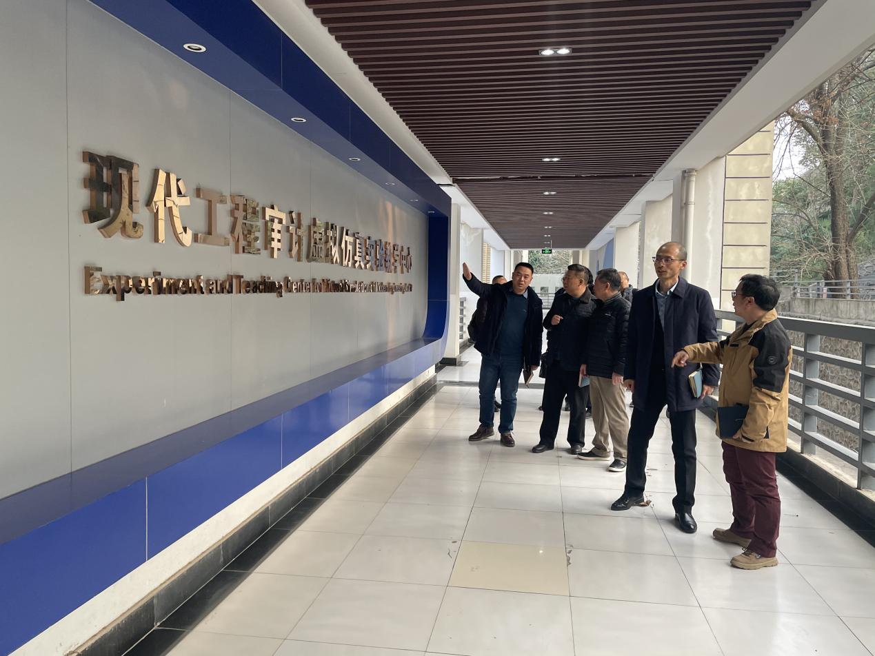 最后,陈骏与张海军进行江苏省智慧工程审计研究中心授牌仪式。会后,一起前往江苏省公共工程审计重点实验室参观,并就智慧工程审计平台及实验室升级改造进行深入交流。