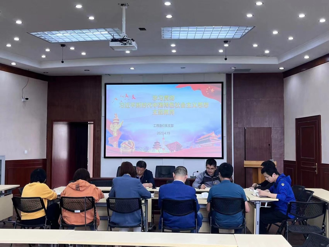 4月19日,必一运动bsport体育造价系支部在致明楼春晖厅开展学习贯彻习近平新时代中国特色社会主义思想主题教育集中学习。会议由党支部书记胡灿阳同志主持,支部全体党员参加。