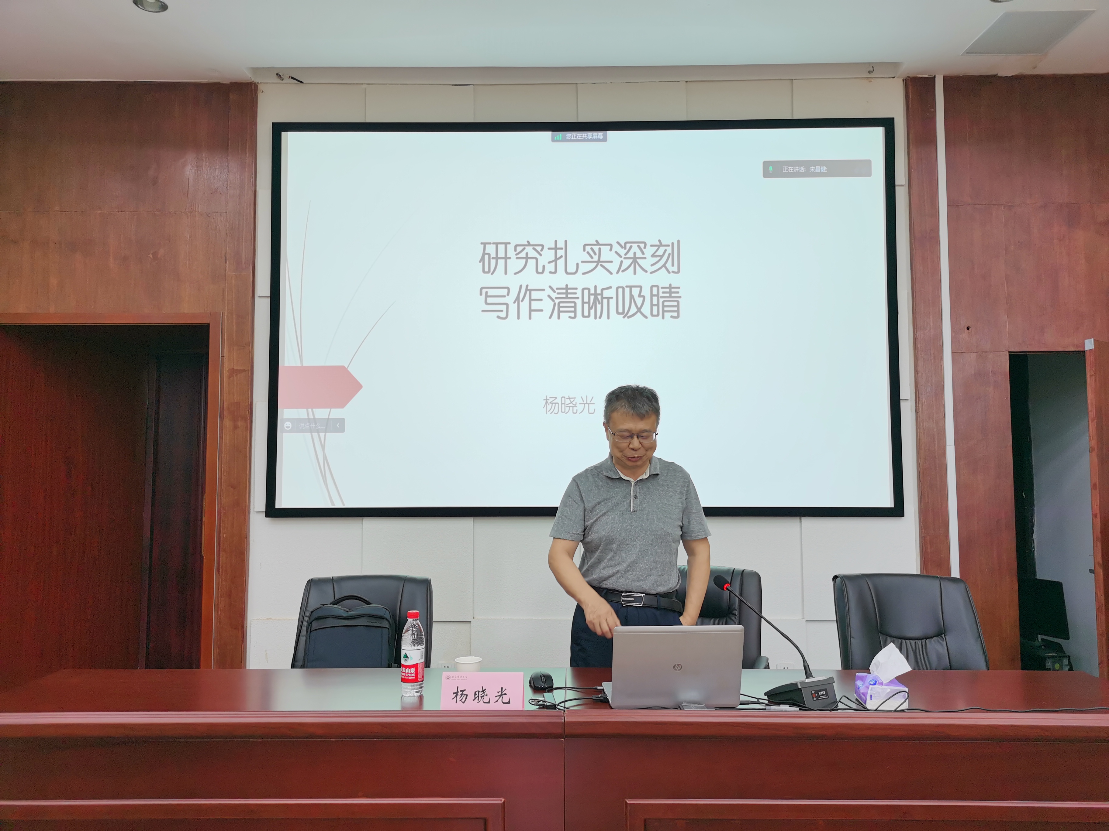 报告会上,杨晓光作了题为“研究扎实深刻,写作清晰吸睛”的学术报告,他从“如何做好研究”和“如何做好研究论文工作”两个主题出发,从“思考有价值的选题、理清研究范式、从现象识别走向规律揭示、提高研究的可靠性”等多层面作了详细分析。同时,他分别从创新性强、实践意义、理论贡献、逻辑清晰、方法巧妙、稳健可靠、拓展性强、写作规范、文笔优美、学术气质等十个方面系统性阐述了高质量研究产出的表现要“清晰吸睛”。报告会后,杨教授与老师们就如何做好科学研究以及高质量论文撰写等进行了深入的探讨和交流。