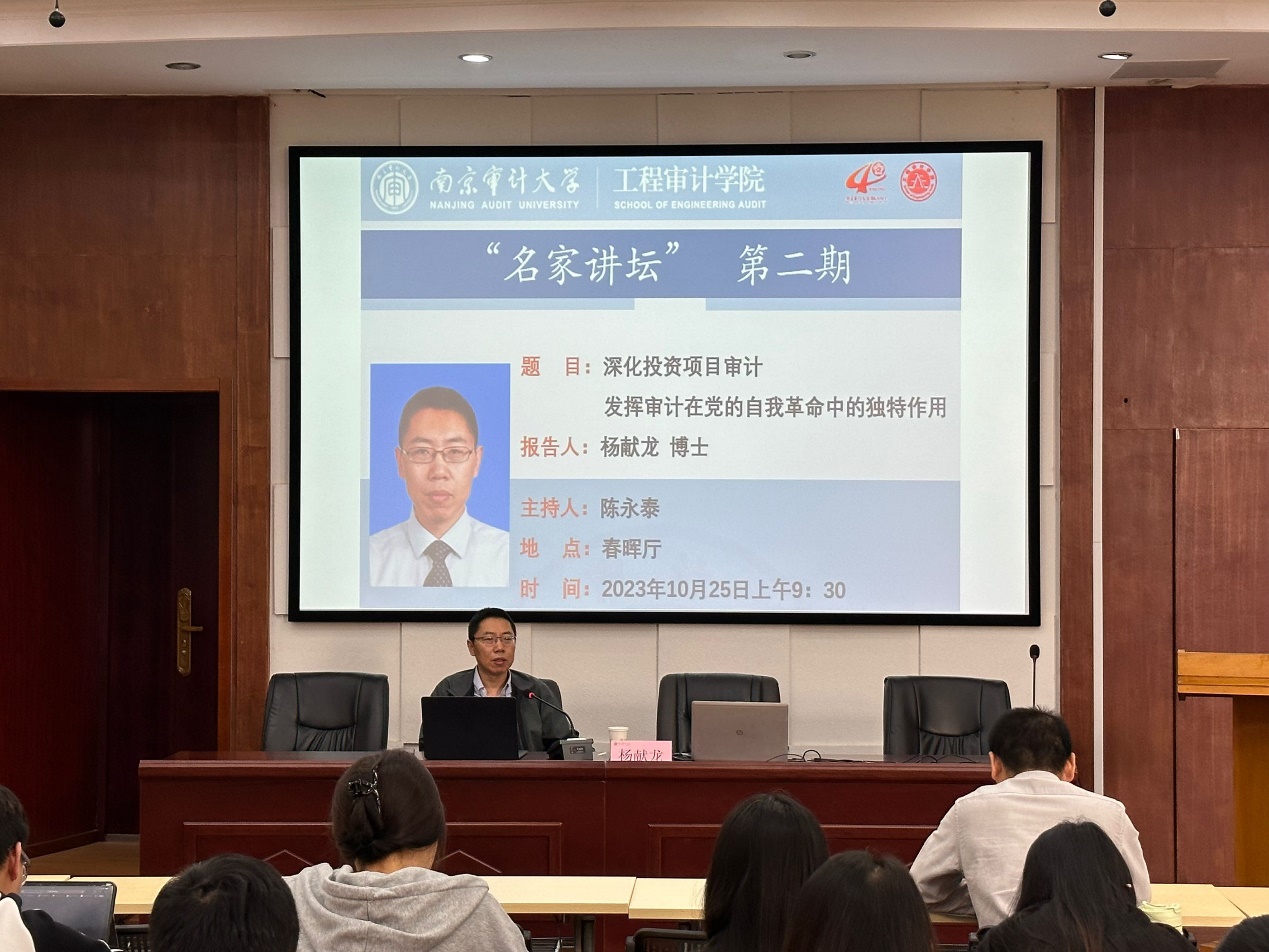 10月25日上午,必一运动bsport体育邀请中国电力集团审计部主任杨献龙博士于春晖厅做主题为“深化投资项目审计发挥审计在党的自我革命中的独特作用”的讲座。必一运动bsport体育全体教师以及研究生代表参加讲座。讲座由公司副经理(主持)陈永泰主持。