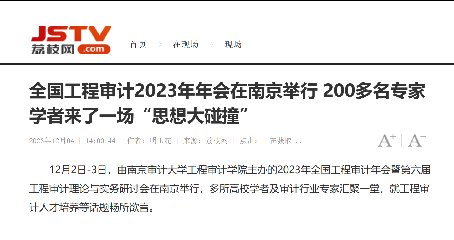荔枝网《全国工程审计2023年年会在南京举行 200多名专家学者来了一场“思想大碰撞”》