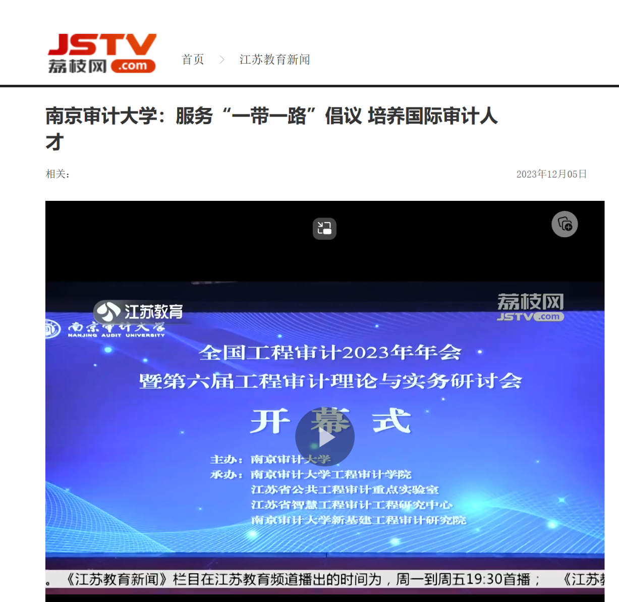 中国江苏网《全国工程审计2023年年会暨第六届工程审计理论与实务研讨会在南京举行》