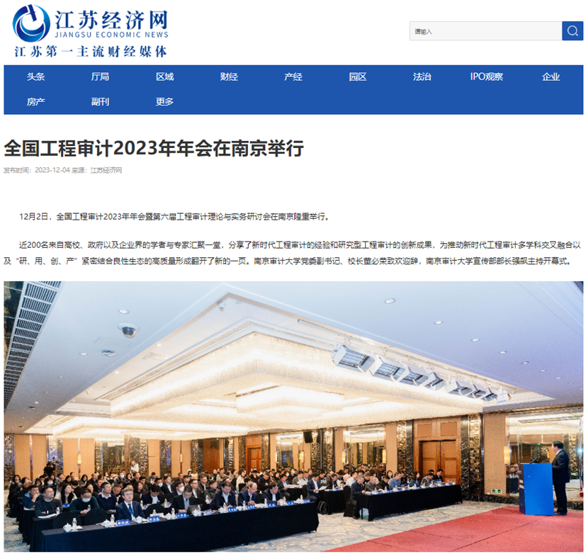 江苏经济网《全国工程审计2023年年会在南京举行》