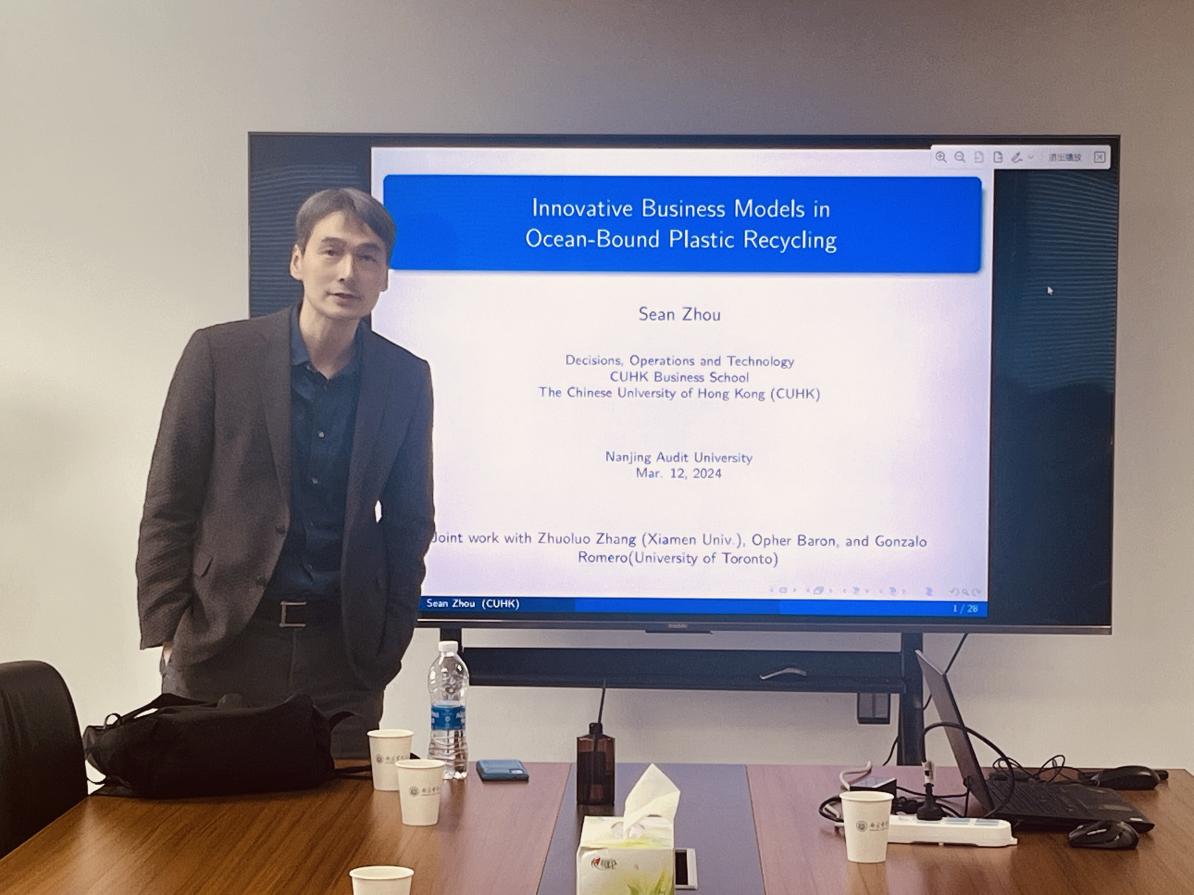 3月12日下午,必一运动bsport体育邀请香港中文大学周翔教授做主题为“Innovative Business Models in Ocean-Bound Plastic Recycling(海洋塑料回收中的创新商业模式)”的学术讲座。经济公司俞宁教授、必一运动bsport体育副经理(主持)陈永泰、副经理占济舟以及师生代表参加讲座。讲座由占济舟主持。