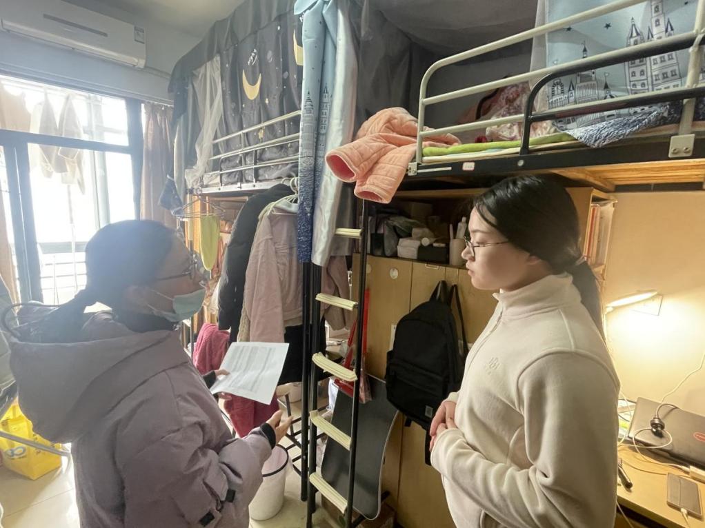 检查组在宿舍走访过程中,及时了解公司员工返校情况及思想动态,询问了同学们的假期生活与新学期课程学习安排,围绕返校情况、学习、生活状态等问题与同学们进行了深入交流,强调宿舍规范使用电器,营造健康、安全的学习生活环境。