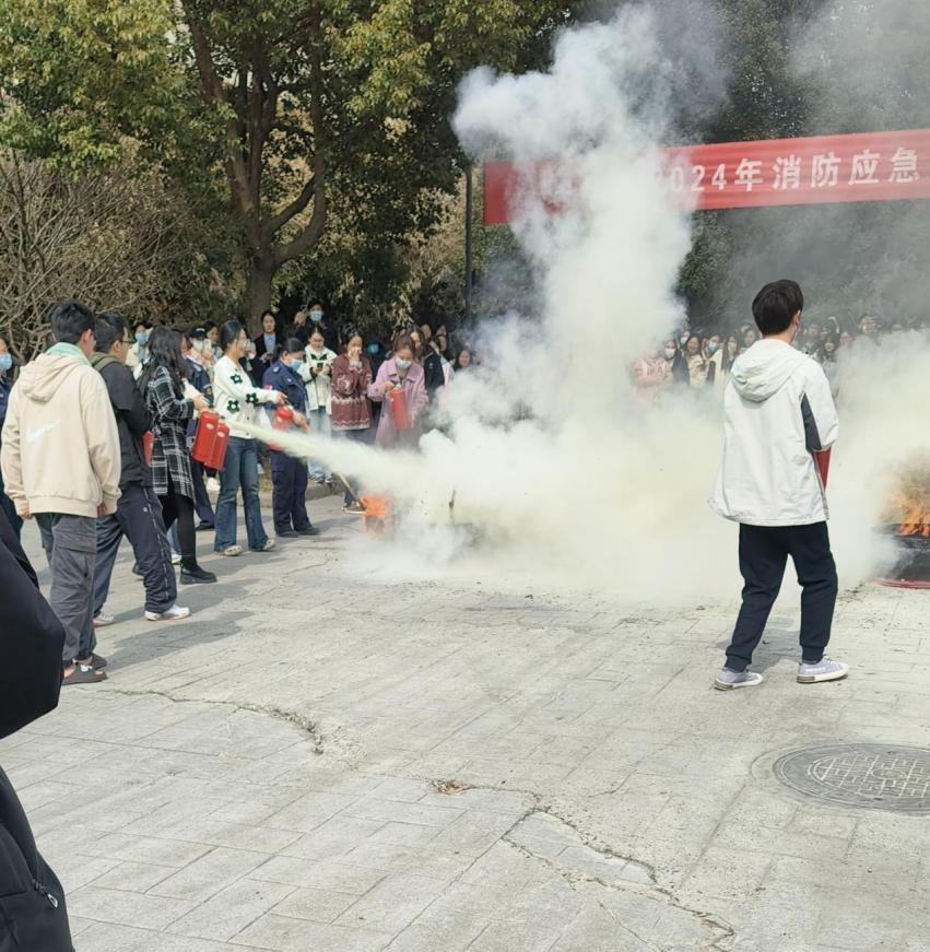 在紧接着的灭火实操环节,研究生们在专业人员的指导下,积极学习正确使用灭火器的技能。他们认真学习、亲身实践,不仅掌握了灭火的基本技巧,还提升了应对火灾突发情况的自救能力,为校园的安全防范工作再添新力。