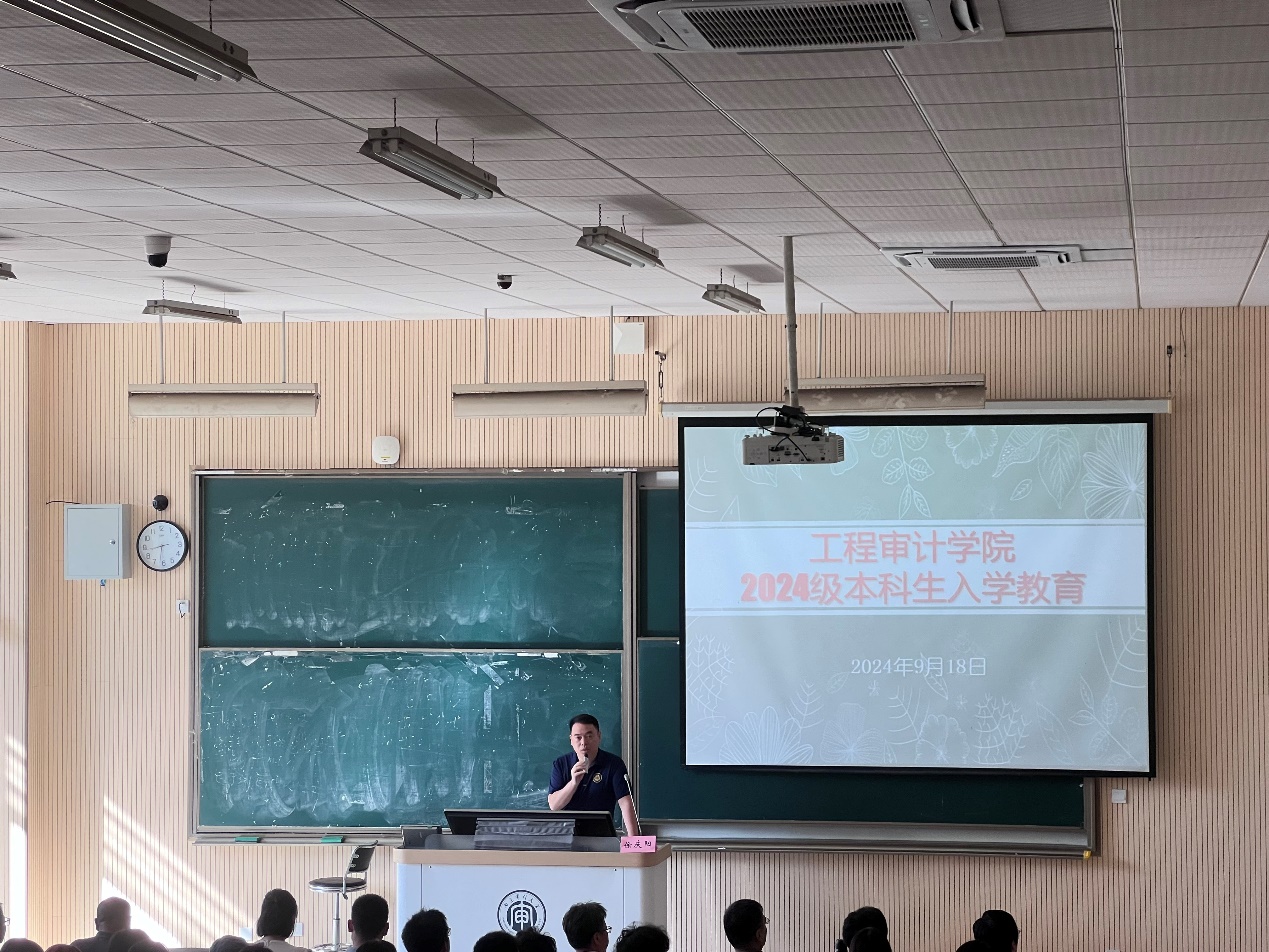 时教授详细阐述了审计的产生与发展脉络,深入解读了工程管理、工程造价以及工程审计专业内涵与特色,就大学专业学习提出了相关的问题启发新生们思考。讲解不仅涵盖专业的基础知识,还深入探讨了这些专业在实际工作中的应用和重要性。时教授将公司的三个专业比喻为建筑工程的三驾马车,每一个都扮演着不可或缺的角色。从项目策划到施工管理,再到最终的审计评估,每一步都至关重要。