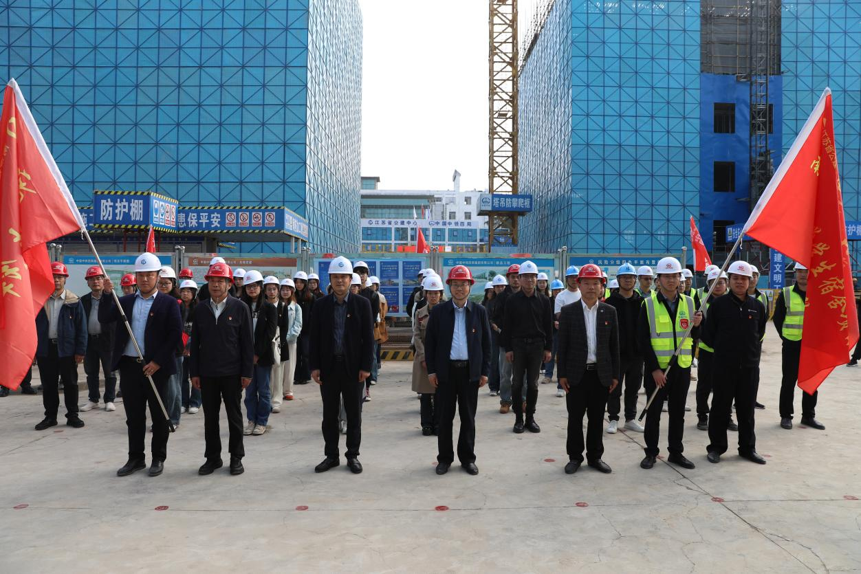 会后举行了授旗仪式,任志成、沈志刚分别为“党员先锋队”和“工程突击队”授旗。随后,中铁四局南京分公司工程师带领公司师生代表30人参观了宿舍施工现场,并进行了答疑交流。