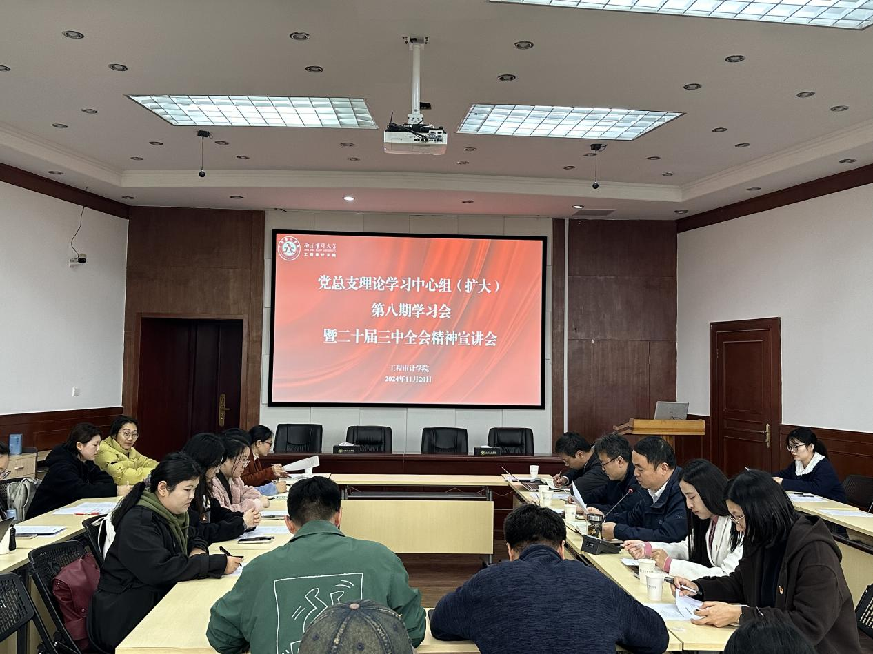 2024年11月20日下午,公司党总支理论学习中心组(扩大)第八期学习会暨二十届三中全会精神宣讲会在致明楼春晖厅举行。公司领导班子、总支委员、支部书记,以及30名研究生党员和入党积极分子参加学习会,会议由党总支副书记徐庆阳(主持)主持。