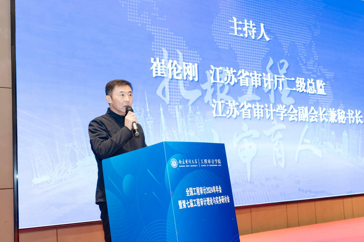 崔伦刚主持“中国式现代化与工程审计”分会场。来自审计署驻昆明特派员办事处、青岛市审计局、华盛兴伟工程咨询有限公司、盐城市审计局、德勤管理咨询(上海)有限公司南京分公司、江宁区审计局、必一运动的与会专家积极分享交流经验,深入探讨中国式现代化为工程审计领域带来的挑战与机遇。