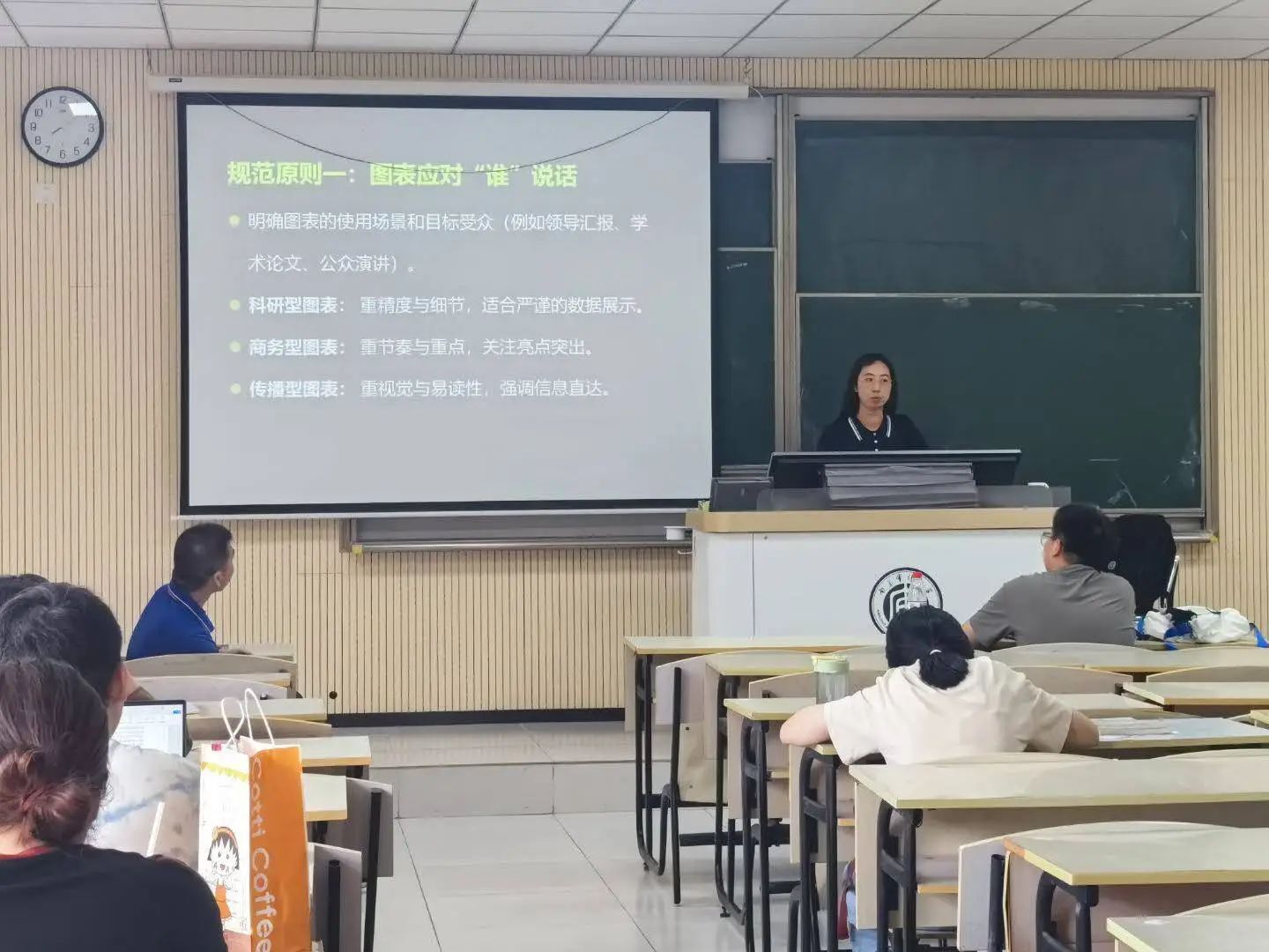2025 年 5 月 28 日,公司邀请公司工程管理系的张优老师在致远楼403举办了“双千”计划之职业能力提升系列讲座——数据会说话:让图表规范与美观并存的技巧探讨。本次讲座聚焦于教育部“双千”计划促就业目标,旨在帮助同学们掌握规范图表制作的原则,提升职场竞争力。