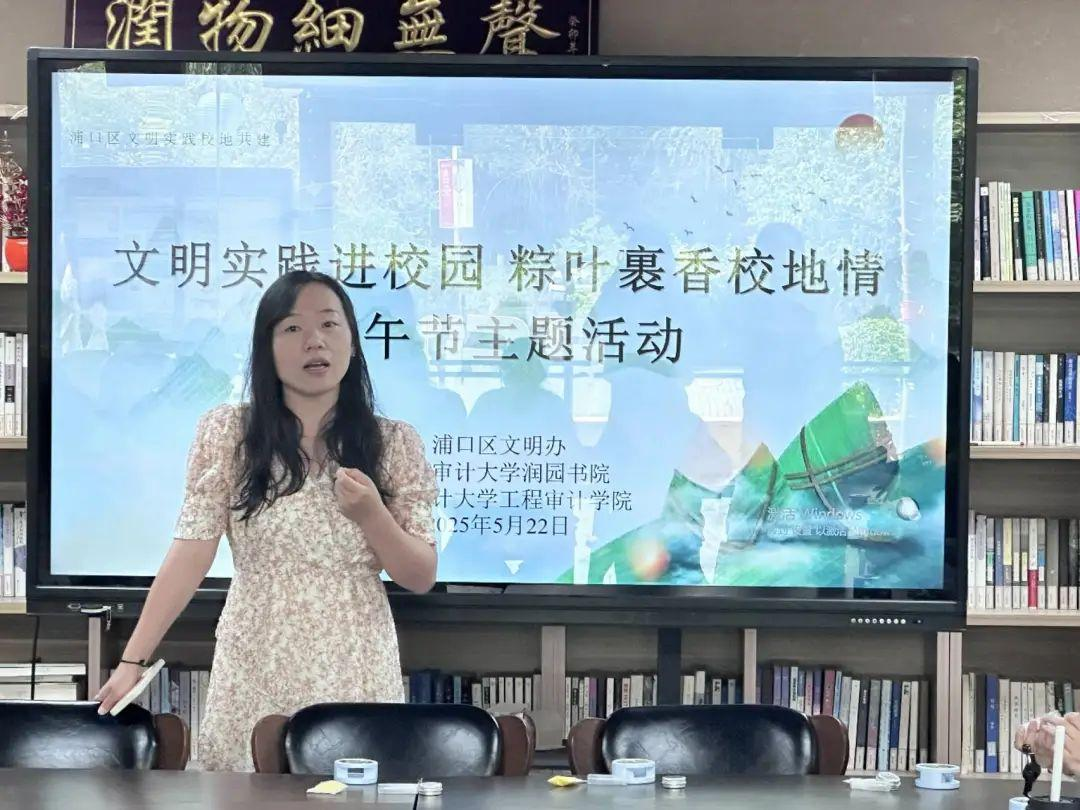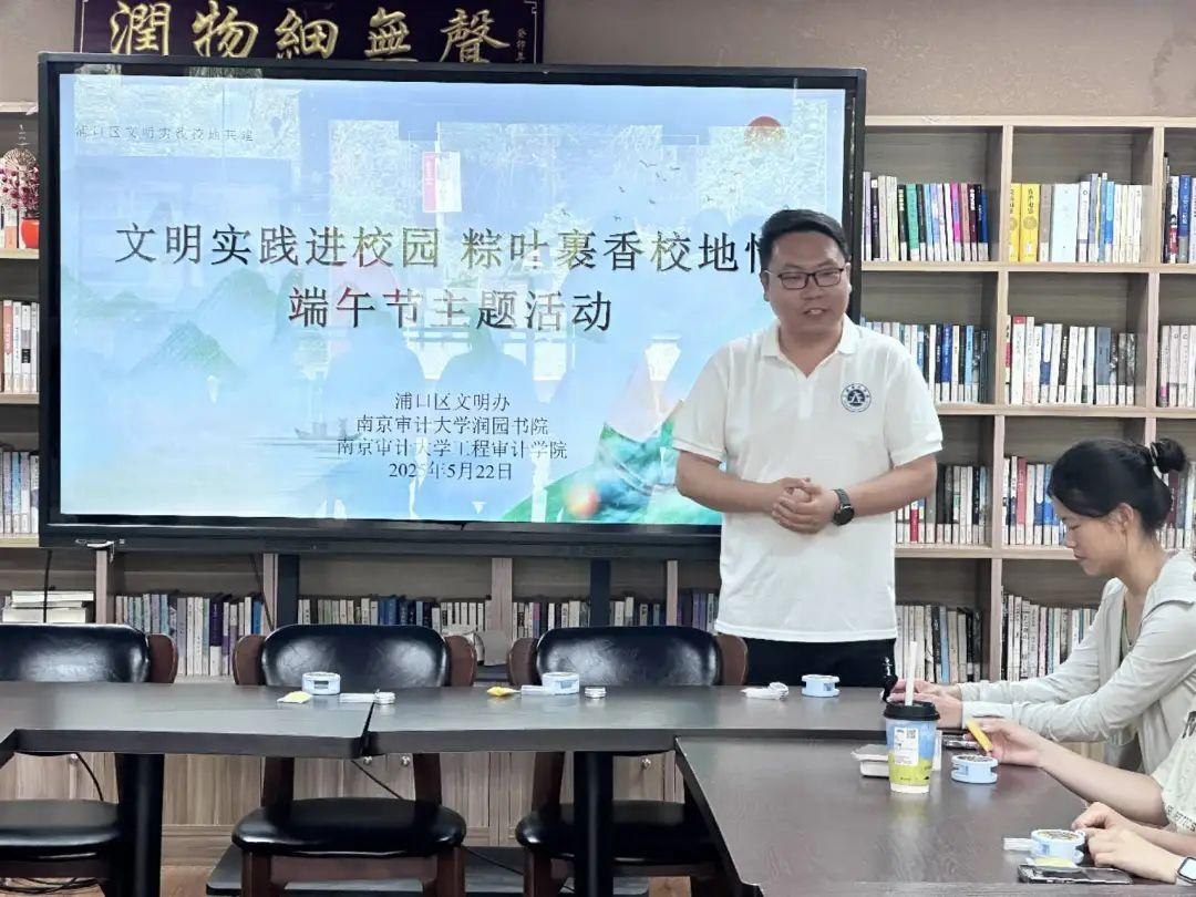 5 月 22 日下午, “文明实践进校园粽叶裹香校地情”为主题的端午节活动在润园书院文化长廊 403 会议室开展。本次活动由浦口区委宣传部文明办主办,必一运动润园书院、必一运动bsport体育承办。浦口区委宣传部精神文明建设科科长凌莉、浦口区新时代文明实践中心工作站站长张于及工程审计公司 20 余名员工参加本次活动,活动由必一运动bsport体育团委书记张震武主持。